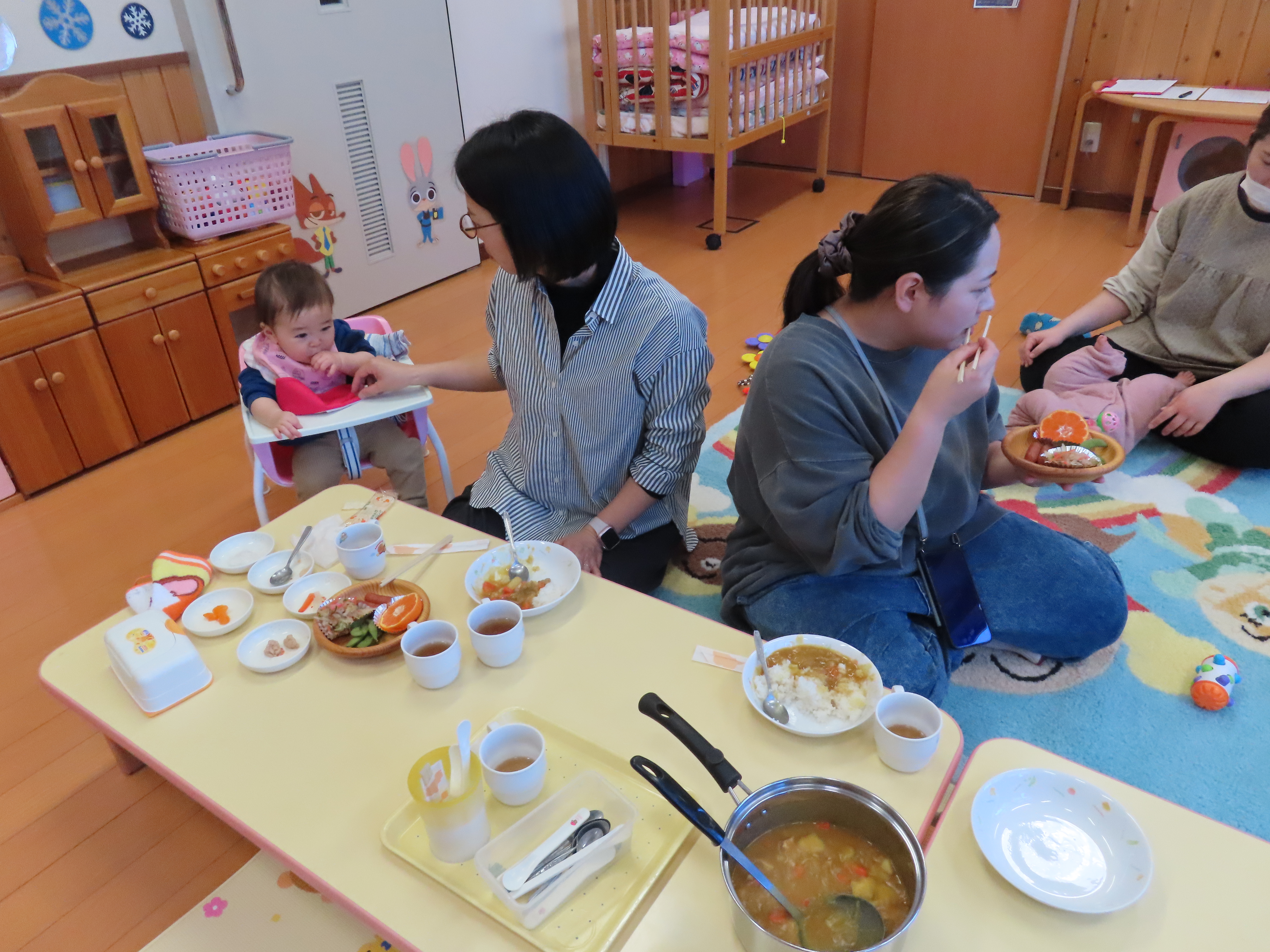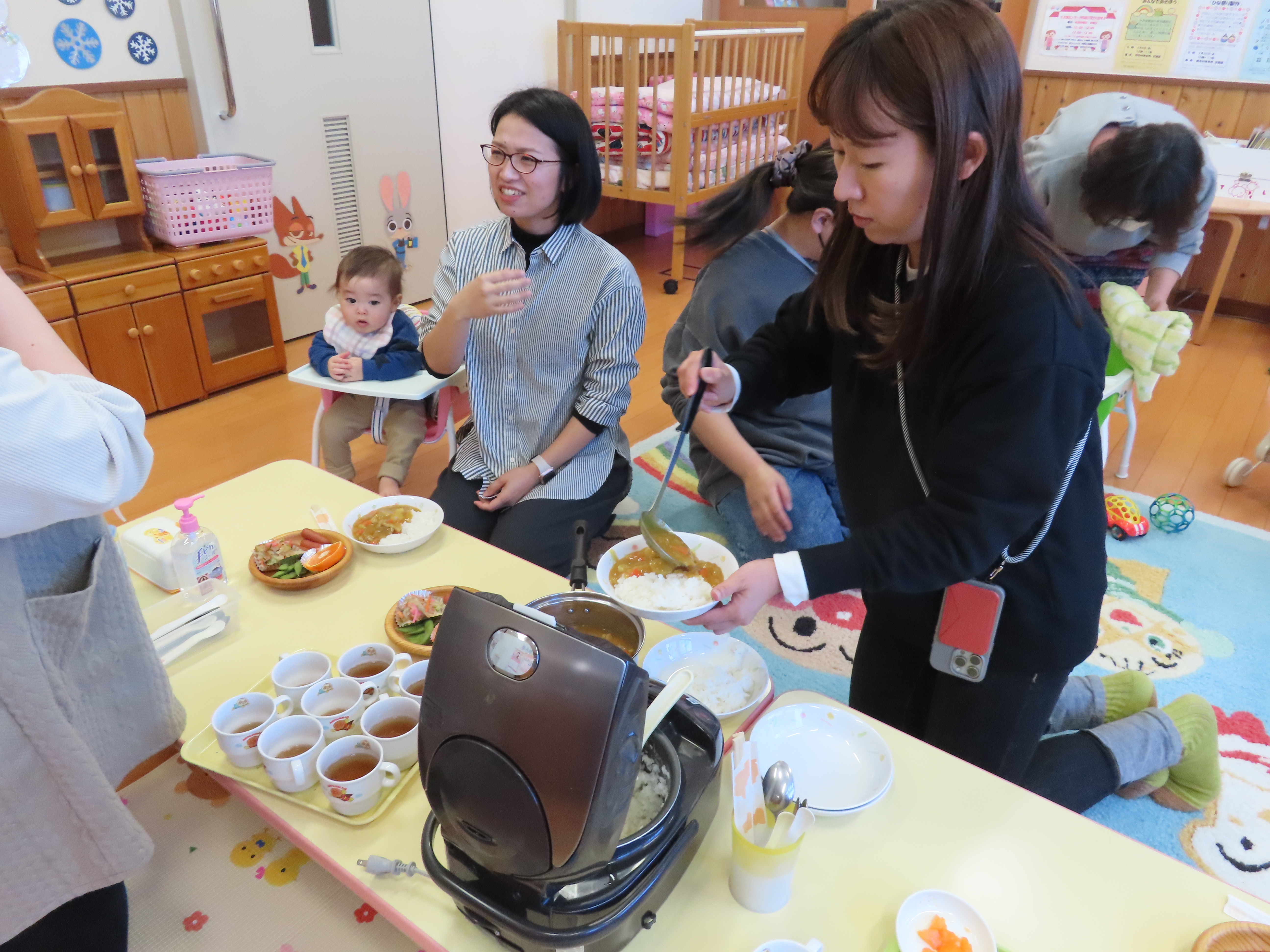 保育所のカレーは子ども達にも大人気ですが、今日参加した保護者の方々からも「おいし~♡」と、好評でした😋