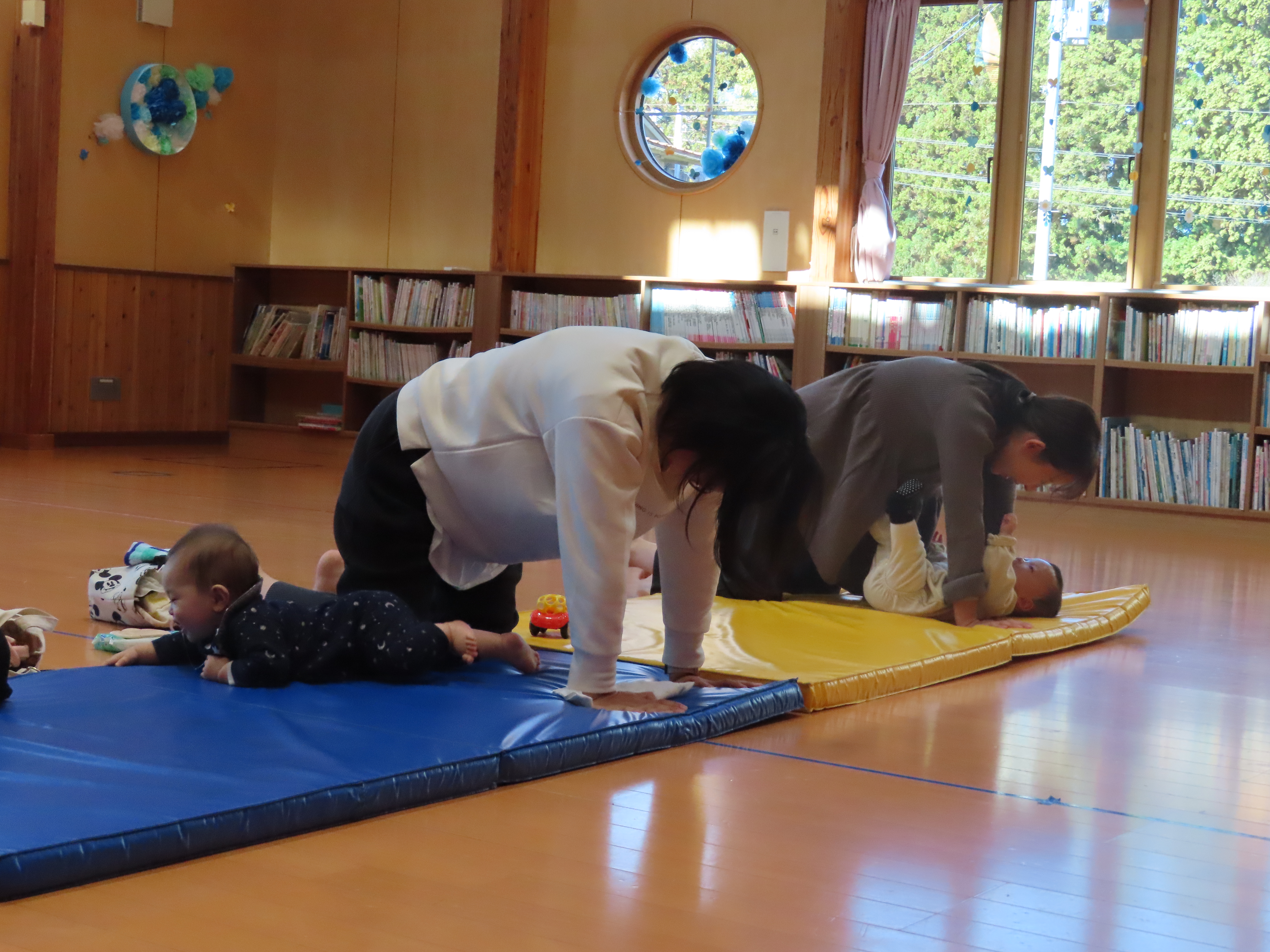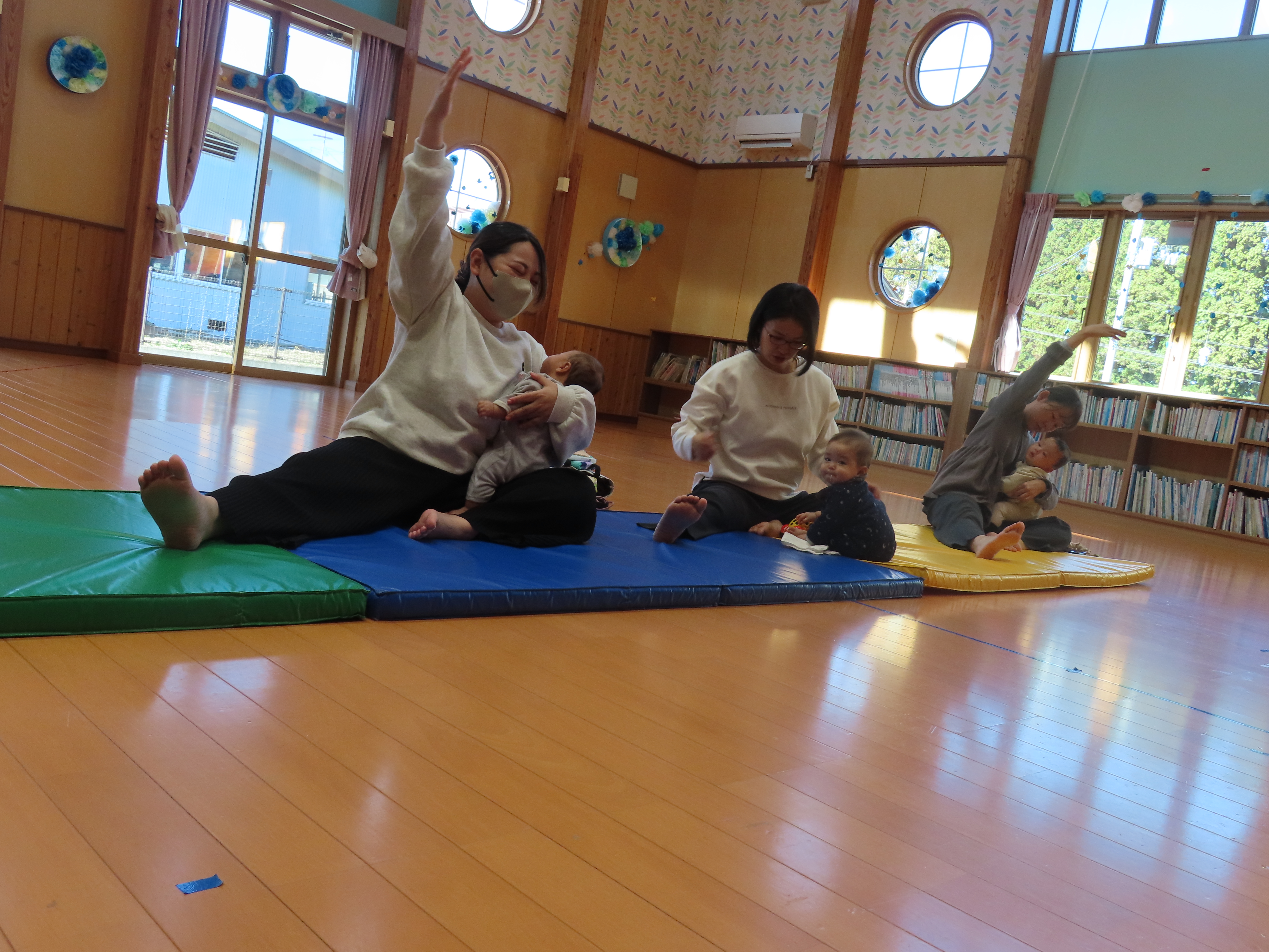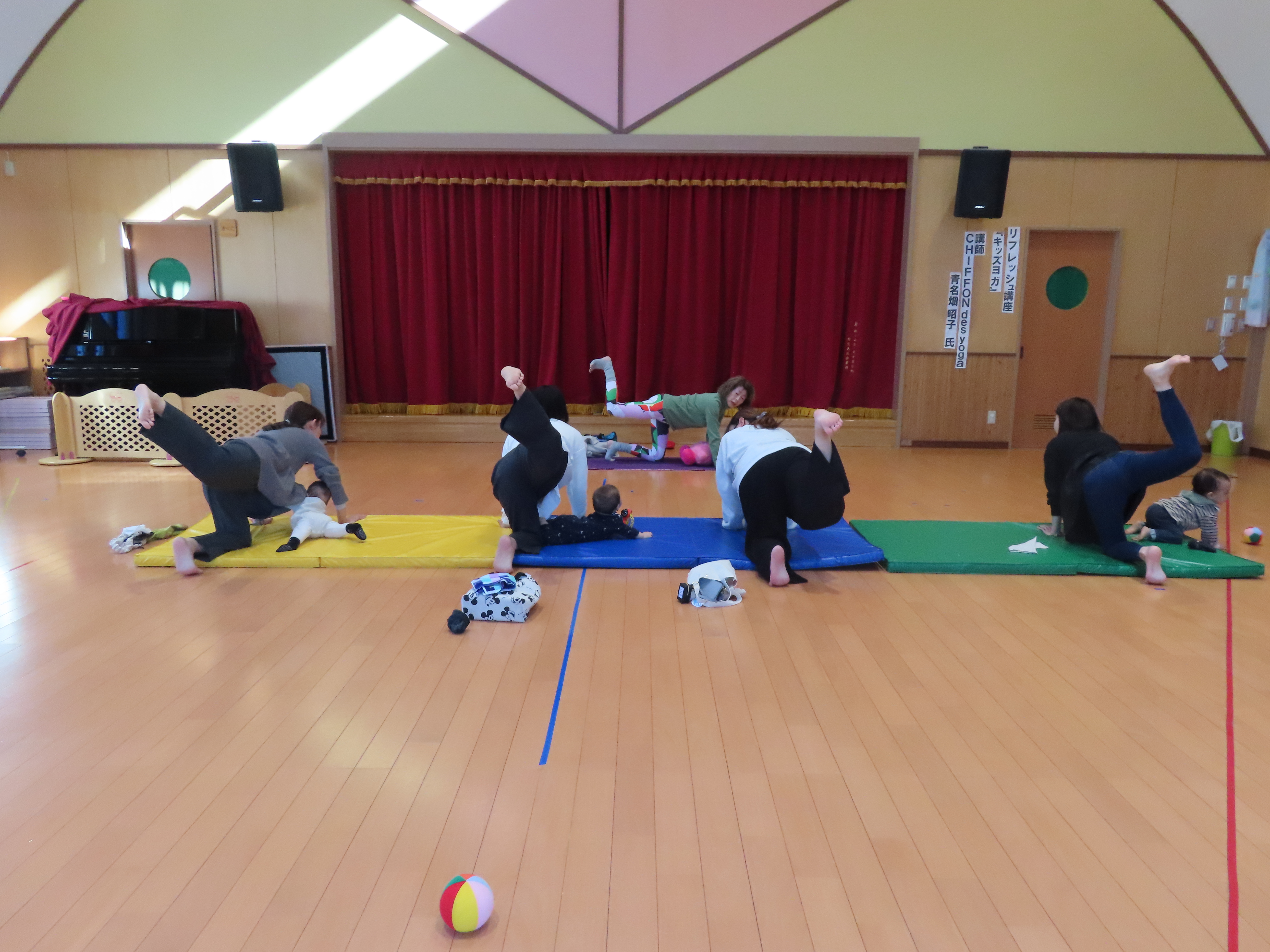 次は子どもも参加しました☺マットに寝かせ、足を前・後ろへ動かしたり、股関節をグルグル回しました。