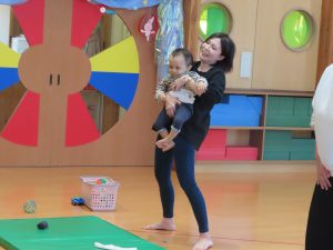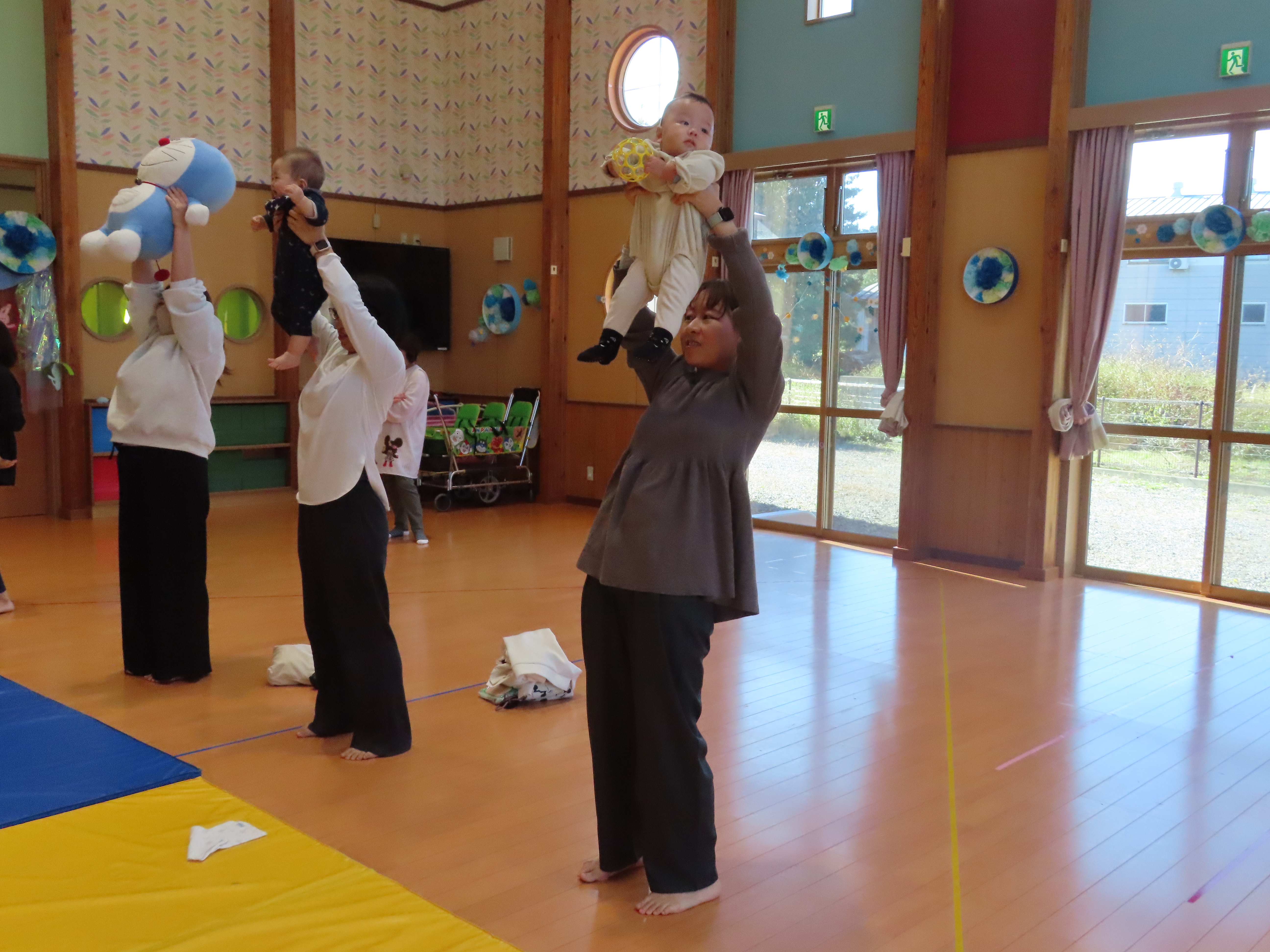 高い高いをしながらアップとダウンの動きを入れていきます💨